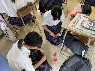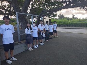 全校生徒でLHRを利用し、宮古島全戦没者追悼式・平和祈念式での献花に向け、千羽鶴を折りました。作成した千羽鶴は、生徒を代表して2年生活福祉科、福里蓮姫さん(城東中)が未来創造センターでの式典にて手向け、宮古島内の高校生を代表し、1年生活福祉科、石嶺恵歌さん(下地中)が、「One for All, All for One,私たちにできること」と題し、平和を願う作文を朗読しました。![]()