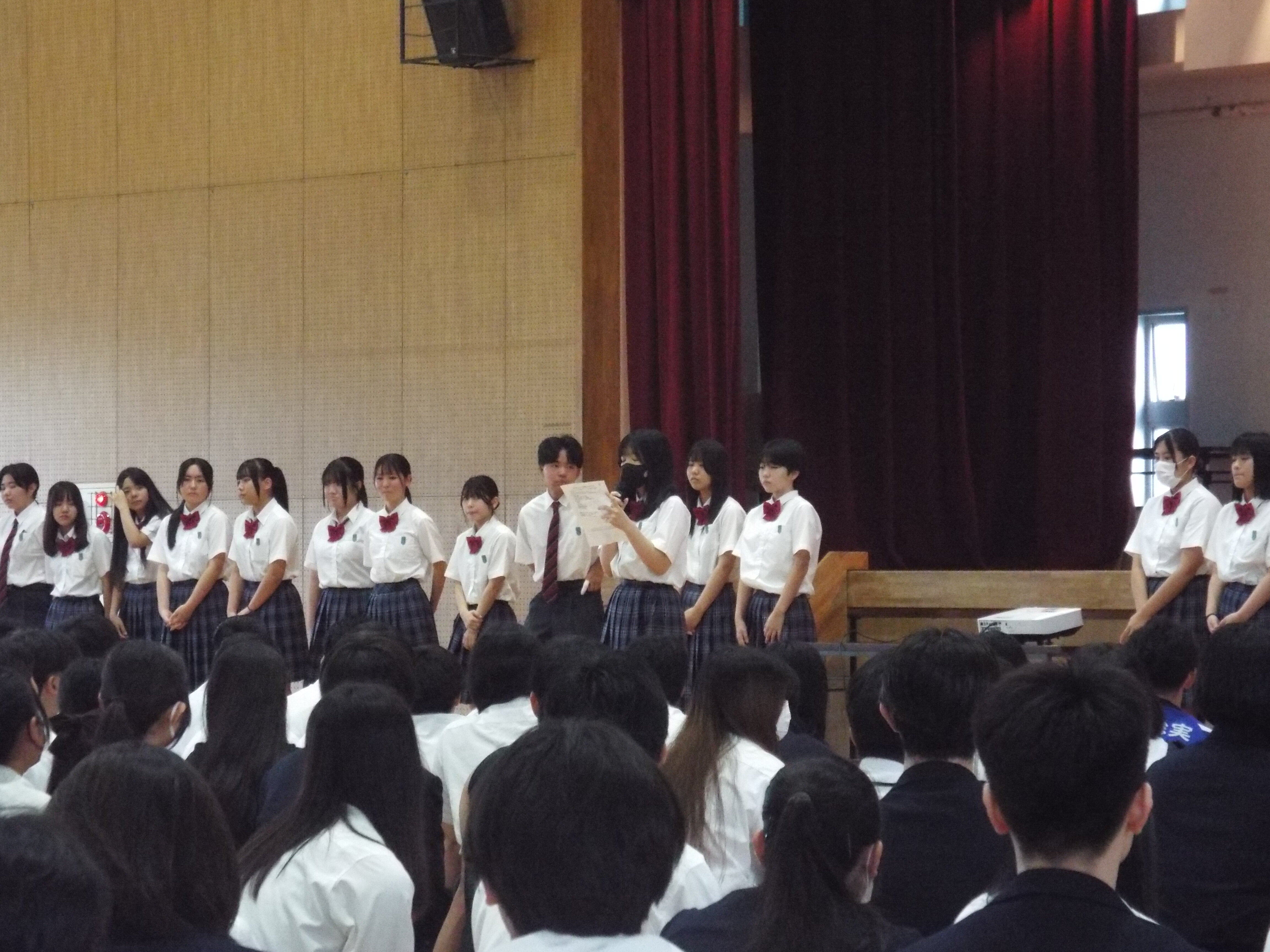 式の中では、前日に行われたホームルーム役員決めで、1学期のHR長に選ばれた生徒たちが代表として登壇しました。先輩たちを前に、自分たちのクラスをどのように盛り上げていきたいか、これからの学校生活への意気込みを堂々と発表する姿に、新入生の頼もしさを感じる場面となりました。