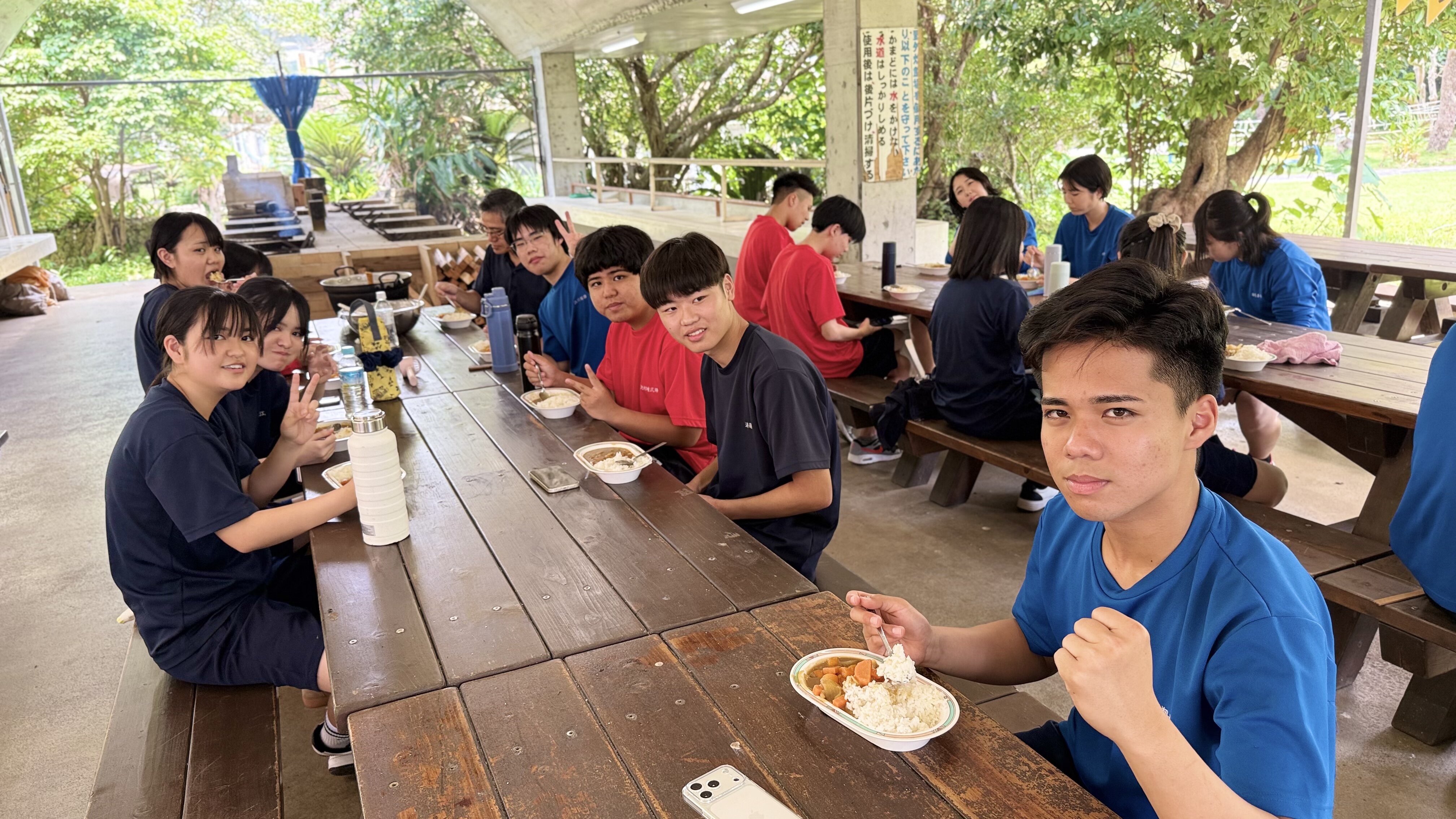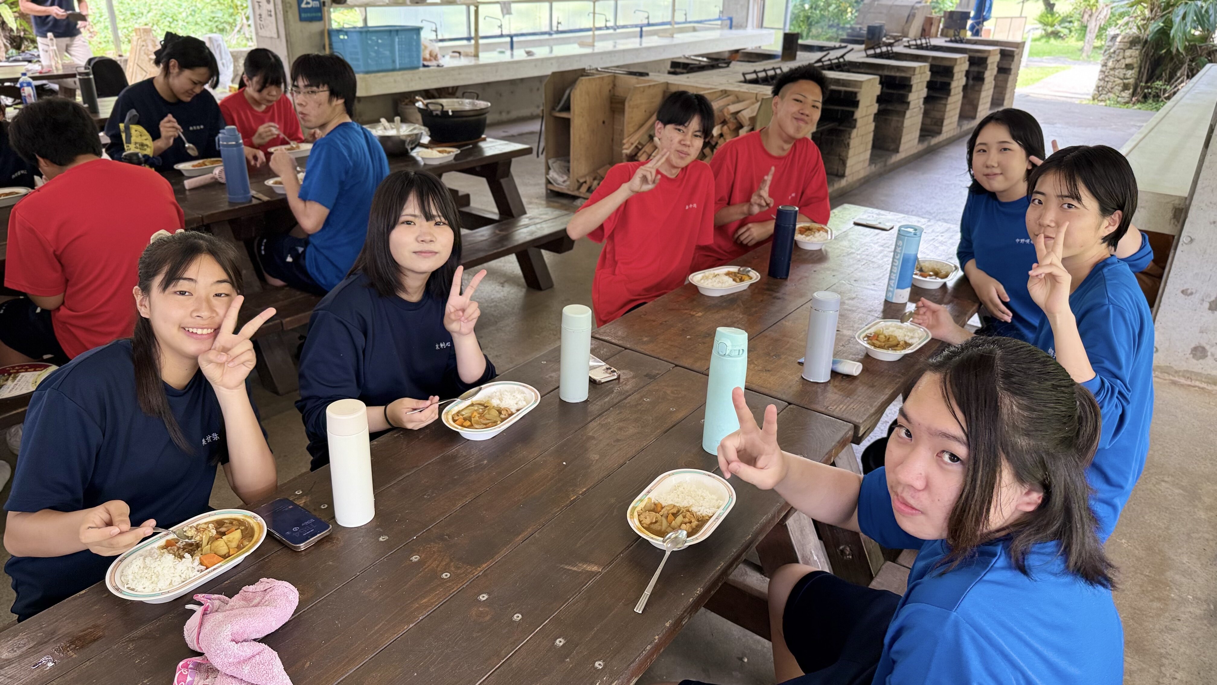 研修の前半では、班ごとに協力して野外炊飯を行いました。